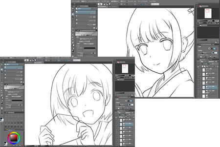 ちょっと主線の雰囲気の違いを比較してみますね(色塗はフォトショップ)